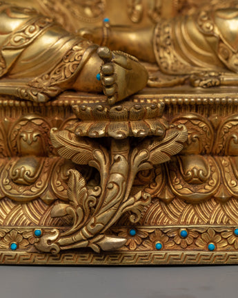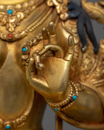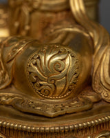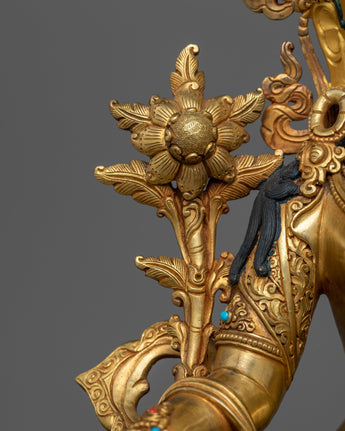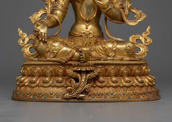 The delicate carvings on Green Tara's flowing robes, the real-life features on her face, and the beautiful patterns on her lotus seat are all enhanced by the stunning gold gilding. These materials provide depth and brilliance to the statue, increasing its visual appeal and spiritual significance. This statue is great for creating a compassionate and protective environment in your home or meditation room.