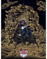 Shri Devi Magzor Gyalmo Thangka | Motherly Buddhist Protector | Black And Gold Art
