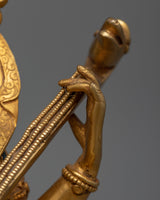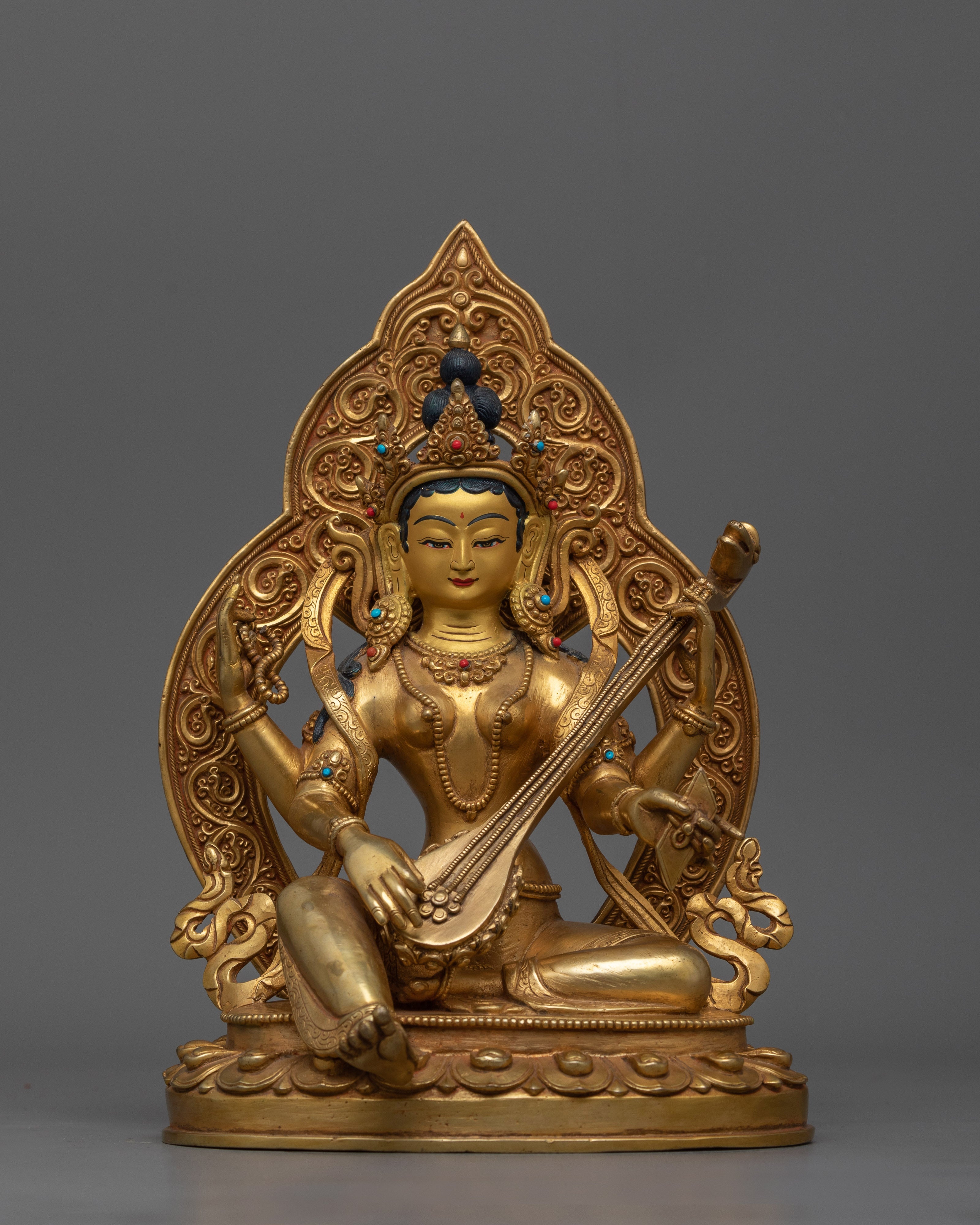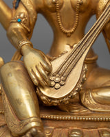 Inspire Enlightenment with the Shri Saraswoti Gold Gilded Statue