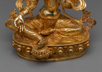 Dynamic Compassion: Gold Gilded Shyama Green Tara Statue