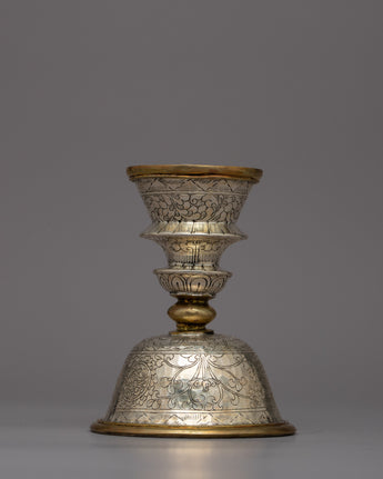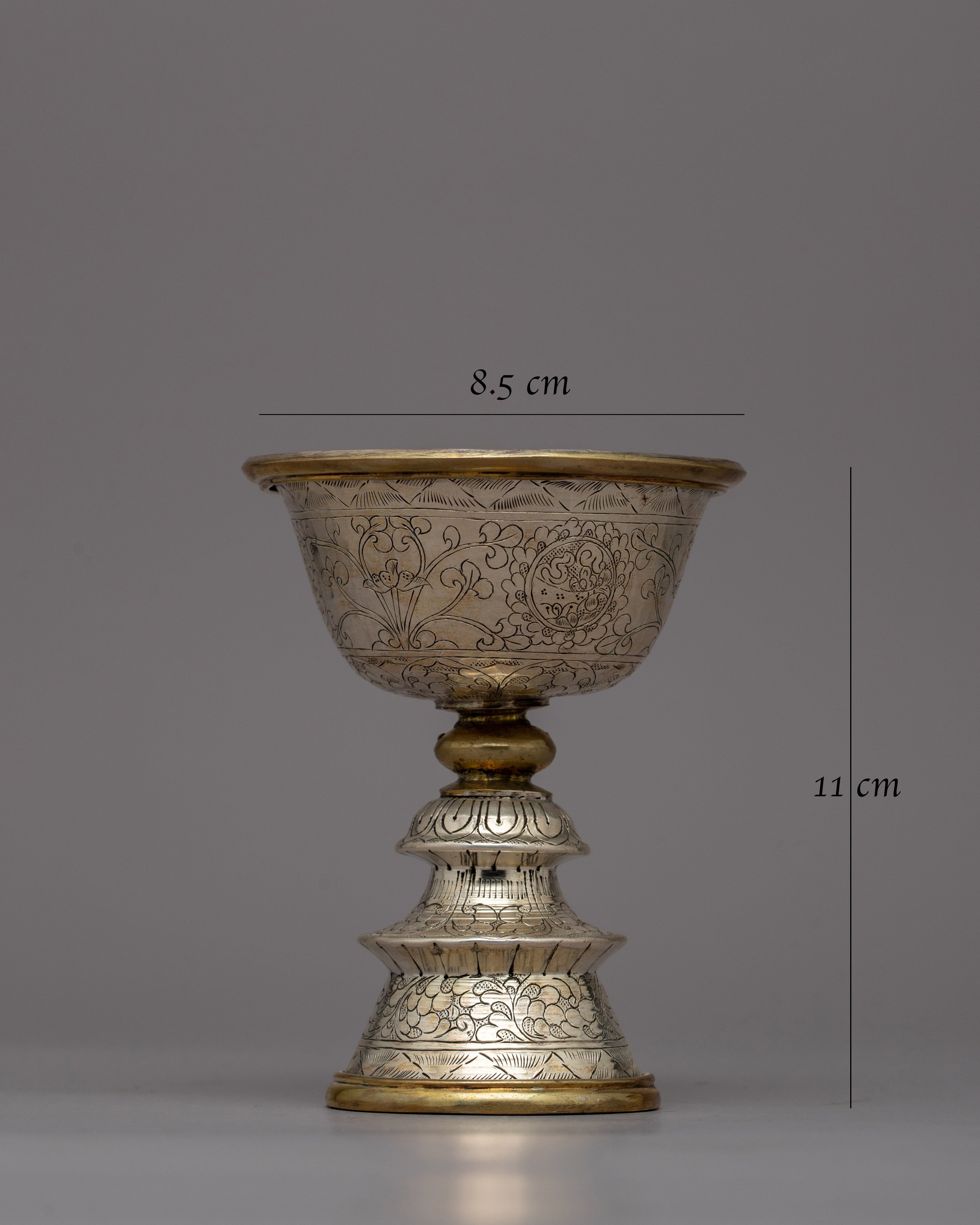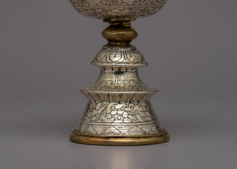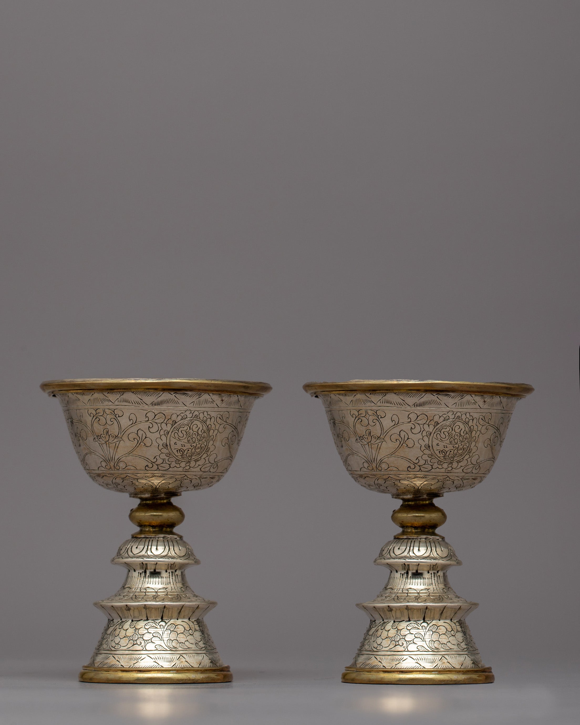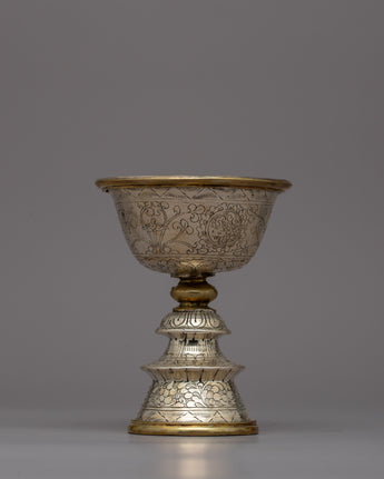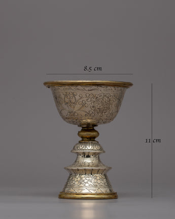 Silver Butter Lamp Prayer Set | Ritual Objects for Enhancing Buddhist Practices and Devotion