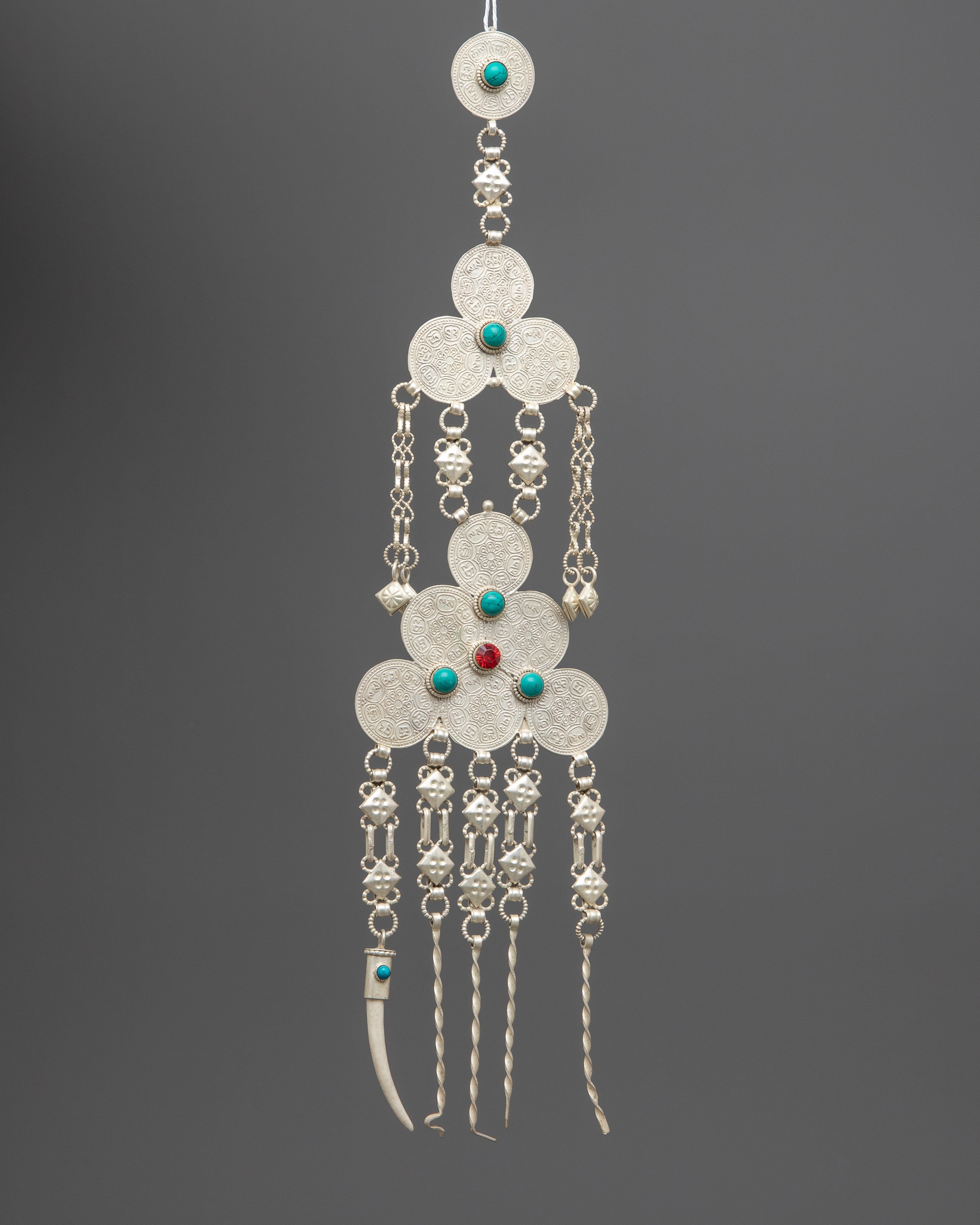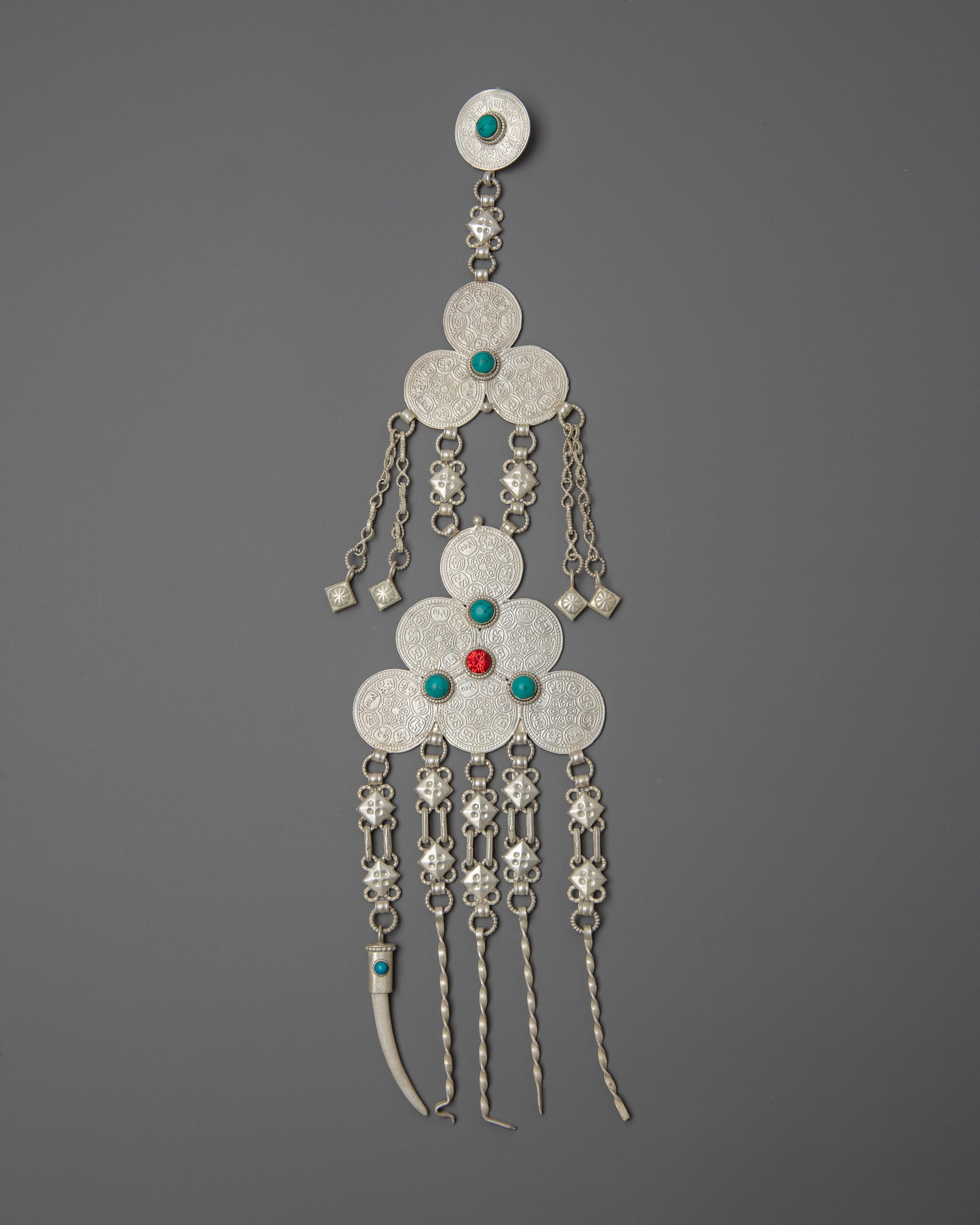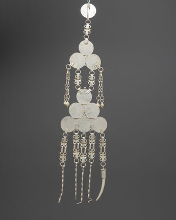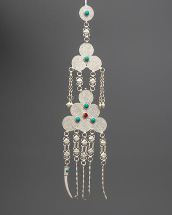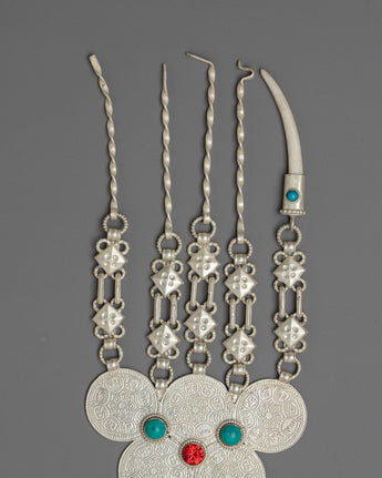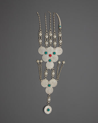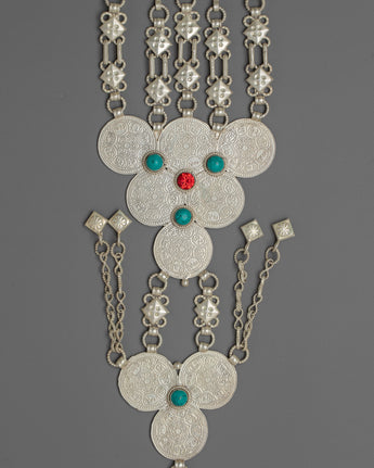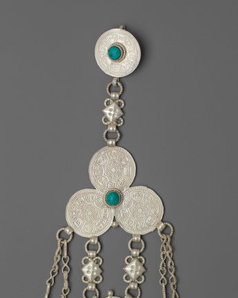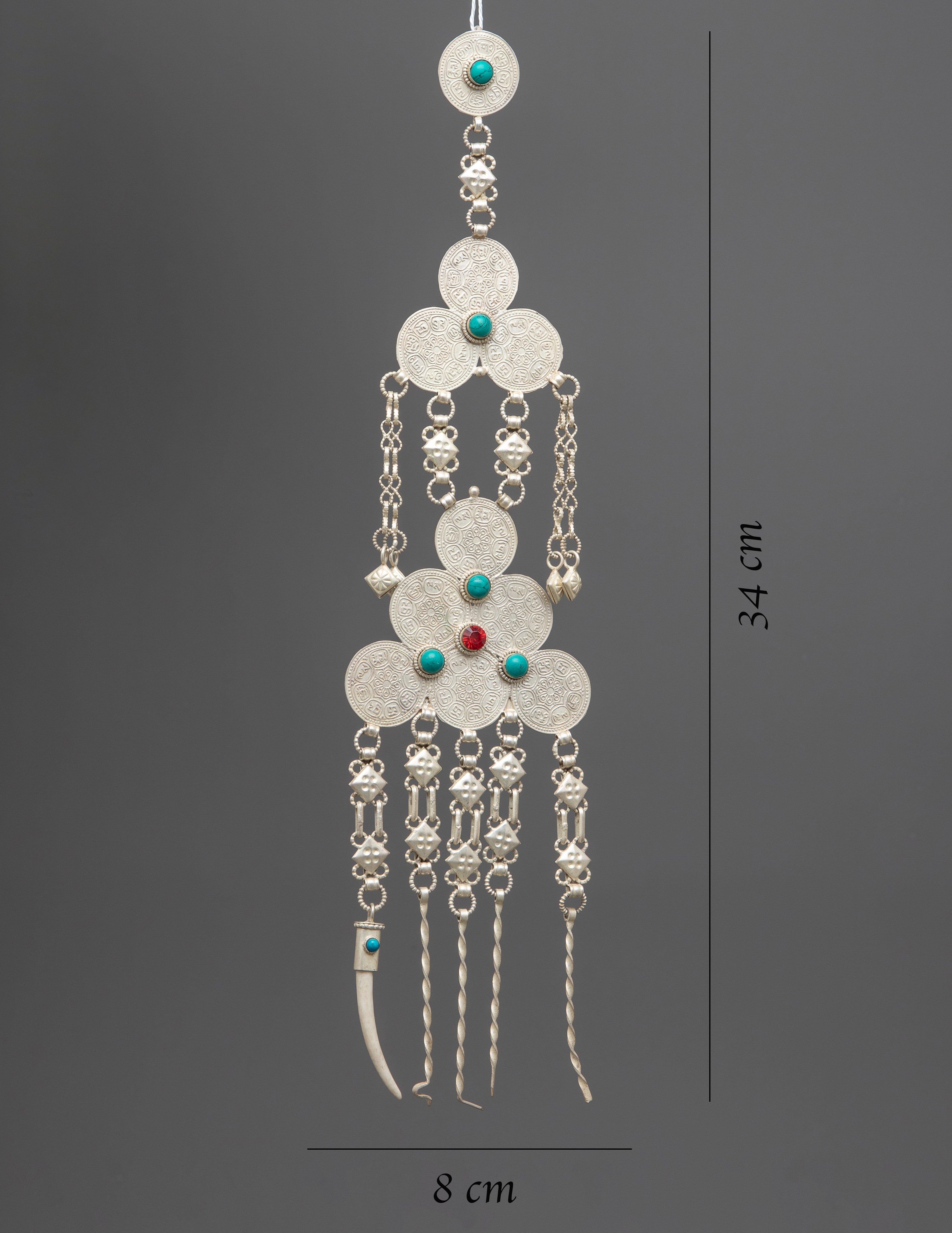 Presenting the exquisite accessory, the handcrafted Silver Plated Challa Waist is made carefully and precisely. This waist ornament with a bronze foundation and silver plating symbolizes sophistication and elegance. Its 34 cm length gives elegance and charm to any outfit, especially when paired with a saree.