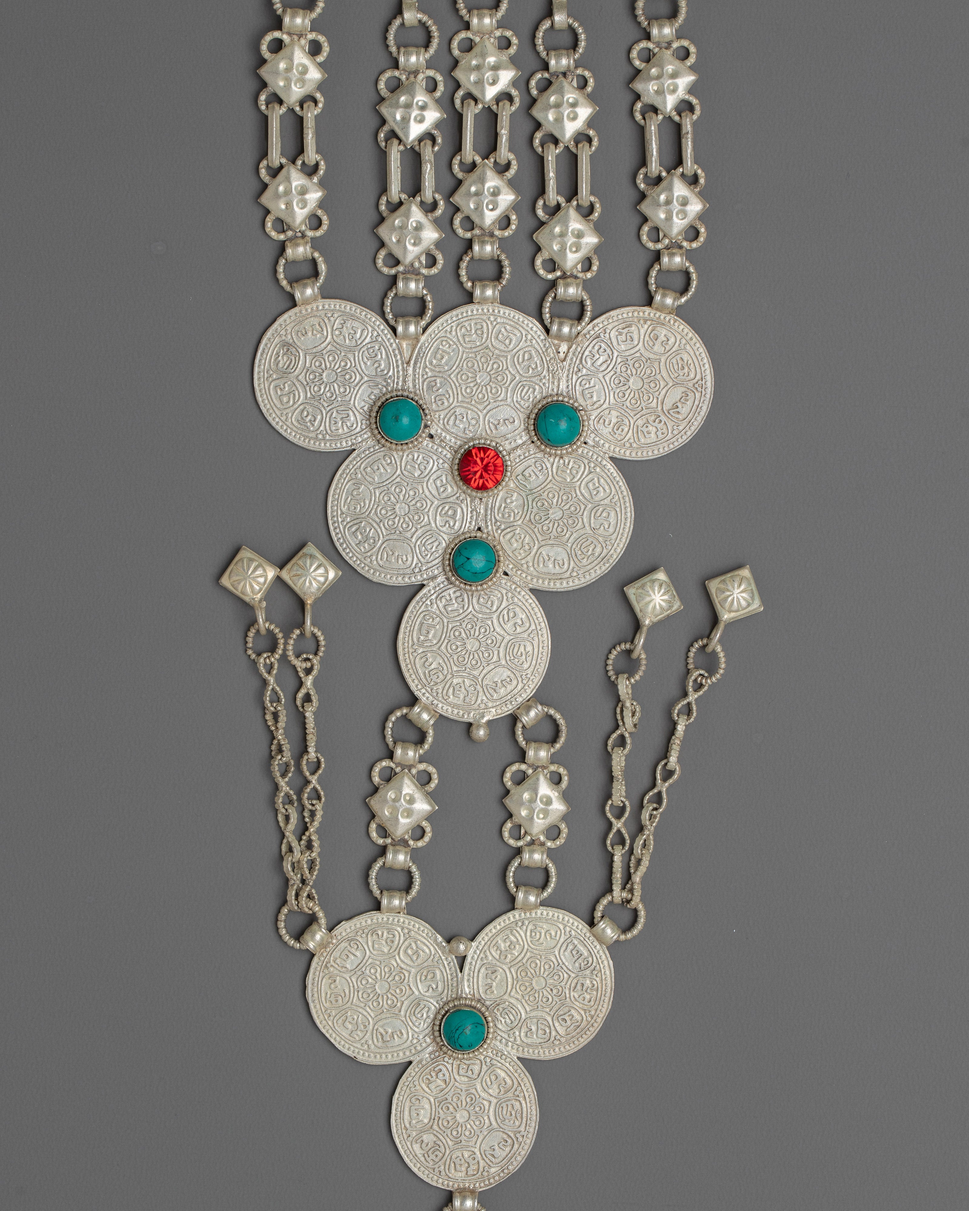 The Silver Plated Challa Waist is sure to draw attention and be admired whether it is worn for formal events or as part of regular clothes. It is a treasured accessory that elevates any ensemble with a hint of glitz and sophistication thanks to its exquisite design and exquisite craftsmanship. With this beautiful piece of jewelry, embrace the grace and tradition of Indian culture and allow your beauty to radiate from you at every turn.
