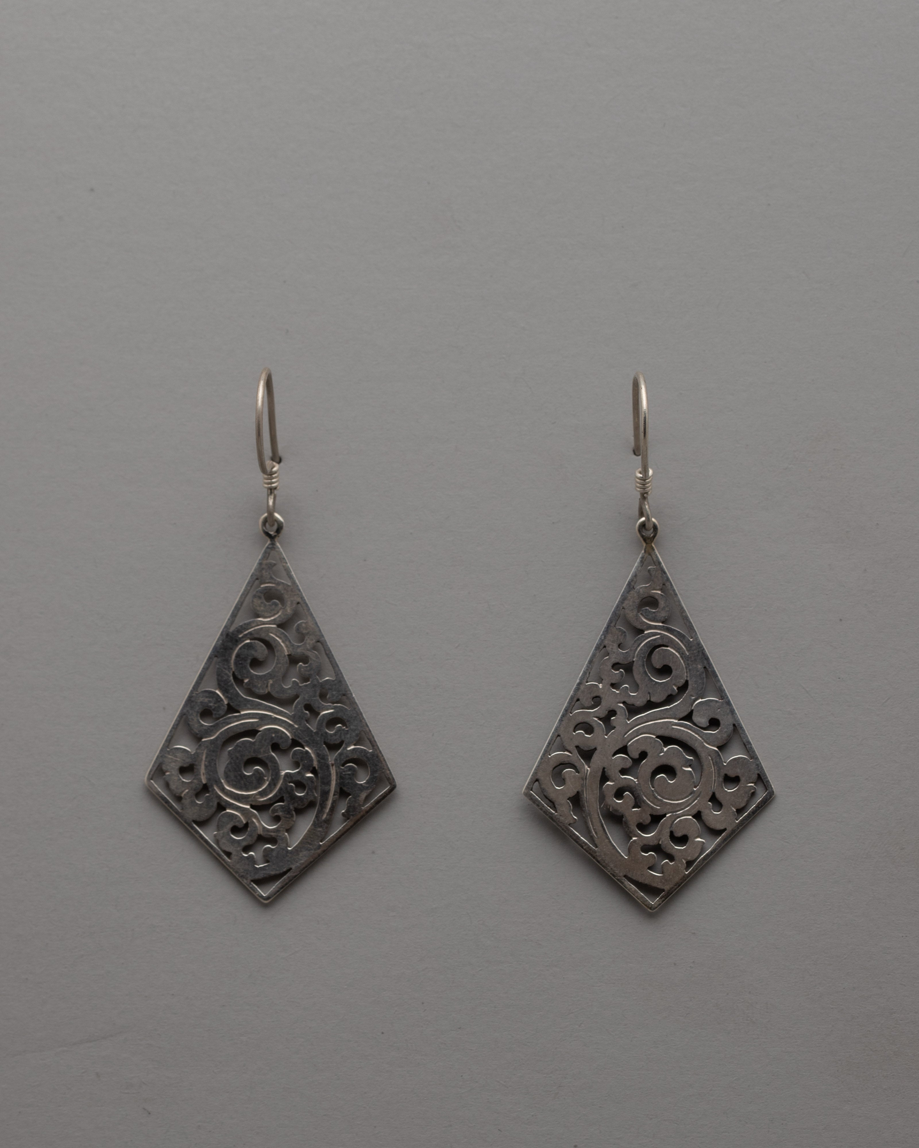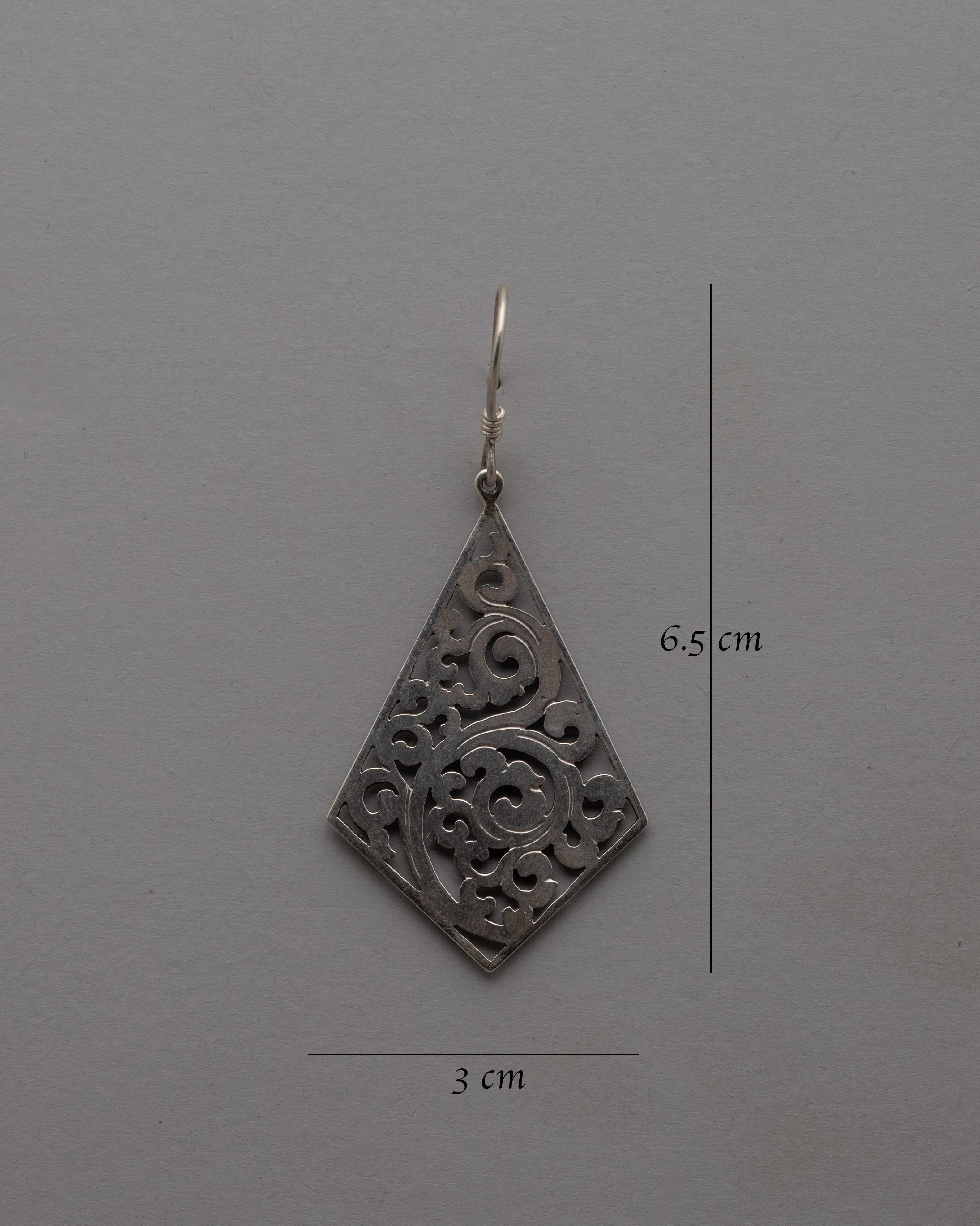 The exquisite craftsmanship and classic beauty are on display in the Silver Earring Set. Each earring has a distinctive kite shape design that is handcrafted on a silver body and radiates sophistication and style. These carefully crafted earrings are a flexible piece that can be used for daily wear as well as formal events.