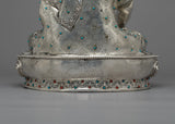 The Shakyamuni Buddha Silver Sculpture is an exceptionally handmade piece of art, with great skill and devotion to detail. Its silver-plated finish, which represents the Buddha's enlightened state, heightens its symbolic meaning. This figurine serves as a reminder of the Buddha's teachings on compassion, wisdom, and inner serenity with its calm face and sympathetic glance.
