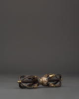 This Silver-Inlaid Tibetan Vajra is a mighty ceremonial scepter representing the indestructibility of truth and the spiritual force of the Vajrayana tradition. It is made of an iron body and decorated with silver inlay. This Vajra stands 4 cm tall and 19 cm wide and weighs 0.39 kilograms. The craftsmanship showcases traditional Tibetan creativity, with finely sculpted ends representing the thunderbolt of enlightenment. As a symbolic sword, it signifies the separation of ignorance and the indestructible essence of enlightenment, making it an indispensable instrument in Buddhist rites and meditation practices.