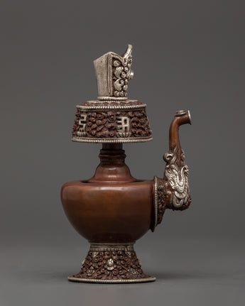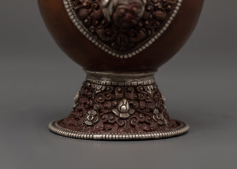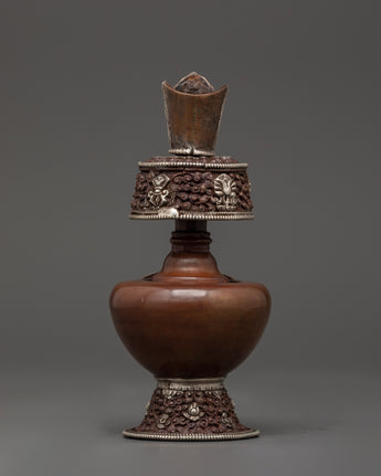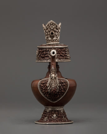 This Bhumba set combines traditional artwork with profound spiritual meaning, making it ideal for altars, temples, or private meditation spaces. It is a ritual object and an essential spiritual décor piece that elevates any sacred area due to the elaborate silver workmanship and symbolic designs that capture the devotion of Tibetan culture.