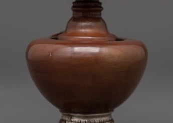 The Bhumba is a ceremonial item that contains holy water blessed by the Guru. The holy water is thought to eliminate negativity and purify people and objects. Bhumba is used for complicated purification rituals to easily purify and defend from harmful forces.