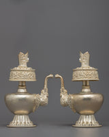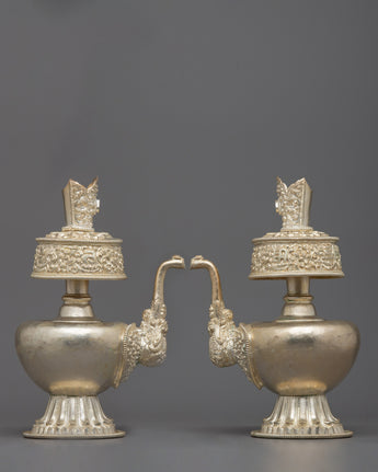 Silver Plated Bhumba Set | Tibetan Ritual Vases for Spiritual Practice