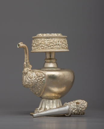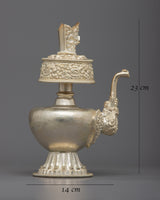 This Bhumba set reflects the connection between the material and spiritual realms and is perfect for use in rituals, private meditation places, or as a focal point in a peaceful area. By acting as a purifying and blessing vessel, it supports practitioners in their quest for enlightenment and spiritual clarity.