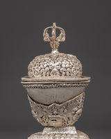 Traditional Silver Plated Kapala | Tibetan Ritual Skull Cup for Spiritual Ceremonies