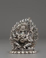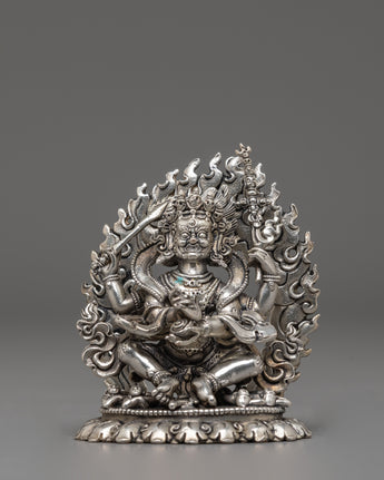 Silver Plated Mahakala Statue | Tibetan Wrathful God Figurine