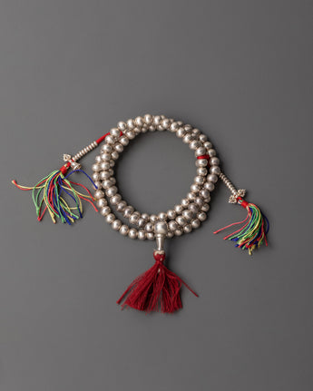 This silver-plated mala is a beautiful spiritual tool designed for meditation, mindfulness, and prayer practice. Made with 108 silver-plated beads, it carries deep spiritual symbolism, supporting focus, calmness, and the repetition of mantras during japa meditation. With its elegant shine and balanced weight, this mala enhances both your spiritual journey and personal style.