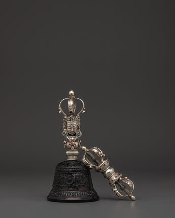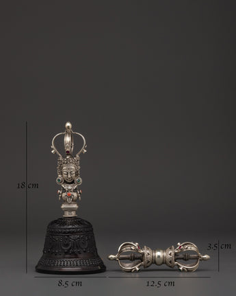Silver-Plated Tibetan Bell and Vajra Set | Buddhist Healing Practices Item
