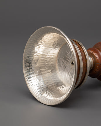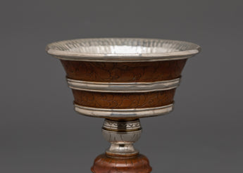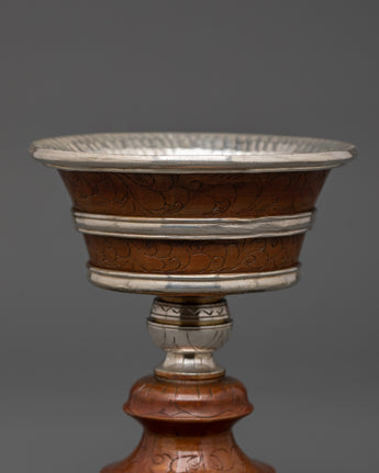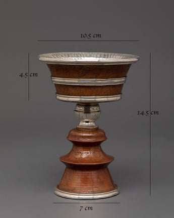 Silver-Plated Tibetan Ritual Butter Lamp | Buddhist Ritual Oil Lamp for Meditation & Altar