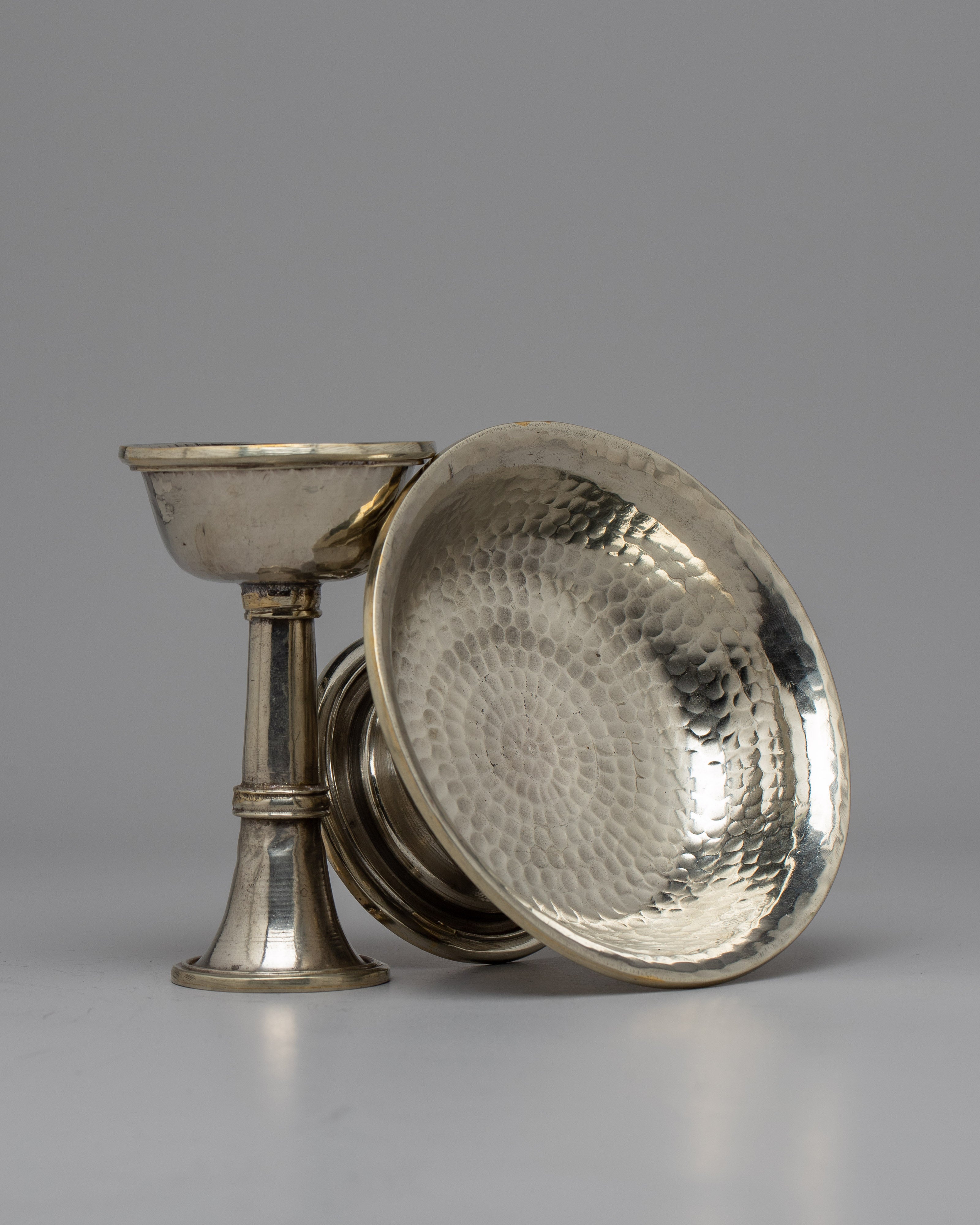 With its handmade silver body, this set exudes an aura of purity and elegance. Its larger size allows for a more prominent presence during your rituals, ensuring that you can infuse your offerings and prayers with sincerity and reverence.