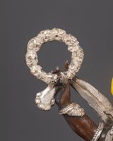 In the Buddhist tradition, the Six-Armed Mahakala is adored as a fearsome deity who represents the transformational force of spirituality. Its aggressive yet protective nature helps individuals cut through the hurdles and negativities that limit their spiritual growth. This deity represents a tremendous energy that aids in the cultivation of courage, protection, and a greater awareness of oneself, guiding you along the road of wisdom and enlightenment.