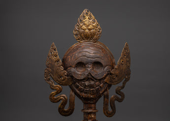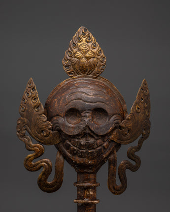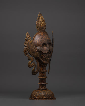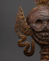 Skull iconography has long been used in Vajrayana ceremonies to remind people of death and the cycle of reincarnation. This iron ceremonial skull is ideal for practitioners of occult arts, Buddhist tantra, and spiritual energy work, as it provides visual impact and profound metaphysical meaning. This skull ceremonial decor, whether in a shrine, temple, or private ritual area, brings great energy, spiritual depth, and protective symbolism to your sacred space.