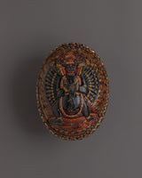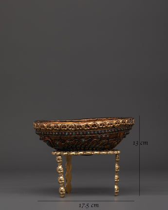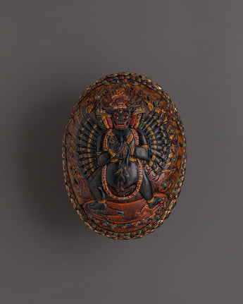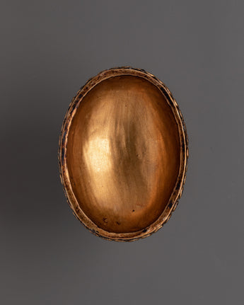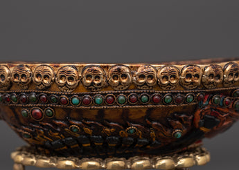 This ritual kapala is intended for both spiritual practitioners and collectors. It serves as a useful offering vessel and a strong symbolic object. The kapala, which is used in tantric ceremonies to make offerings to wrathful deities, reminds us of life's impermanence and the route to spiritual freedom. Whether used for meditation, puja, or altar decoration, this silver-plated copper skull cup adds spiritual energy, artistic beauty, and deep tantric symbolism to your holy space.