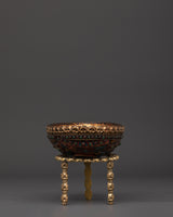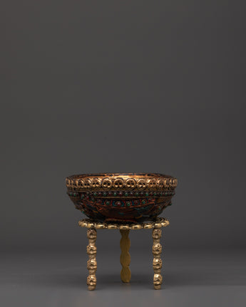 The Kapala set holds the nectar used in higher esoteric rituals. It offers liberation to gods and deities to ensure their devotion. The offerings are said to be transformed into the Wisdom Nectar, a liquid form of the deity's Enlightened Mind.
