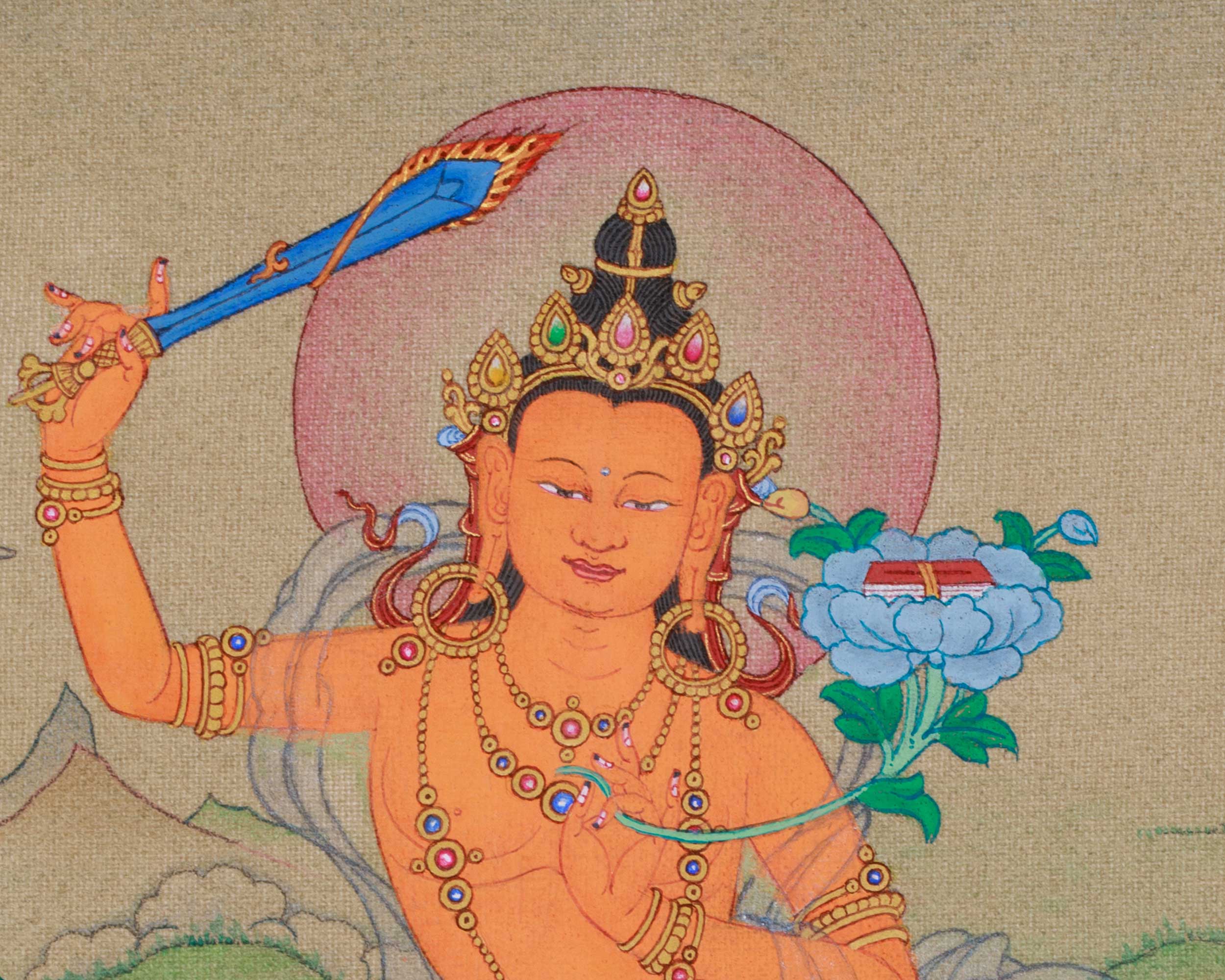 Small 23cm Manjushri Thangka | Bodhisattva of Insight and Knowledge