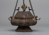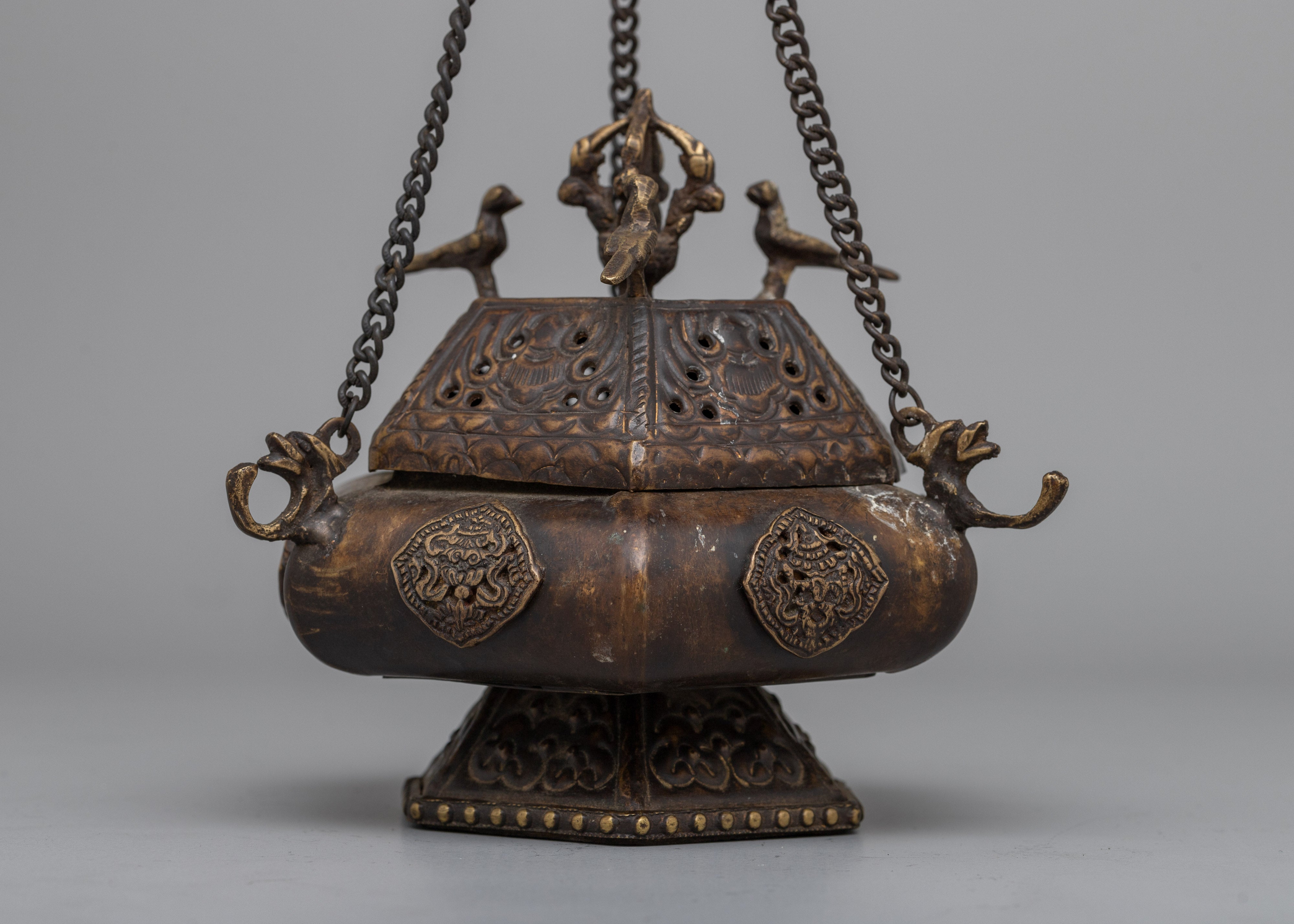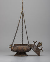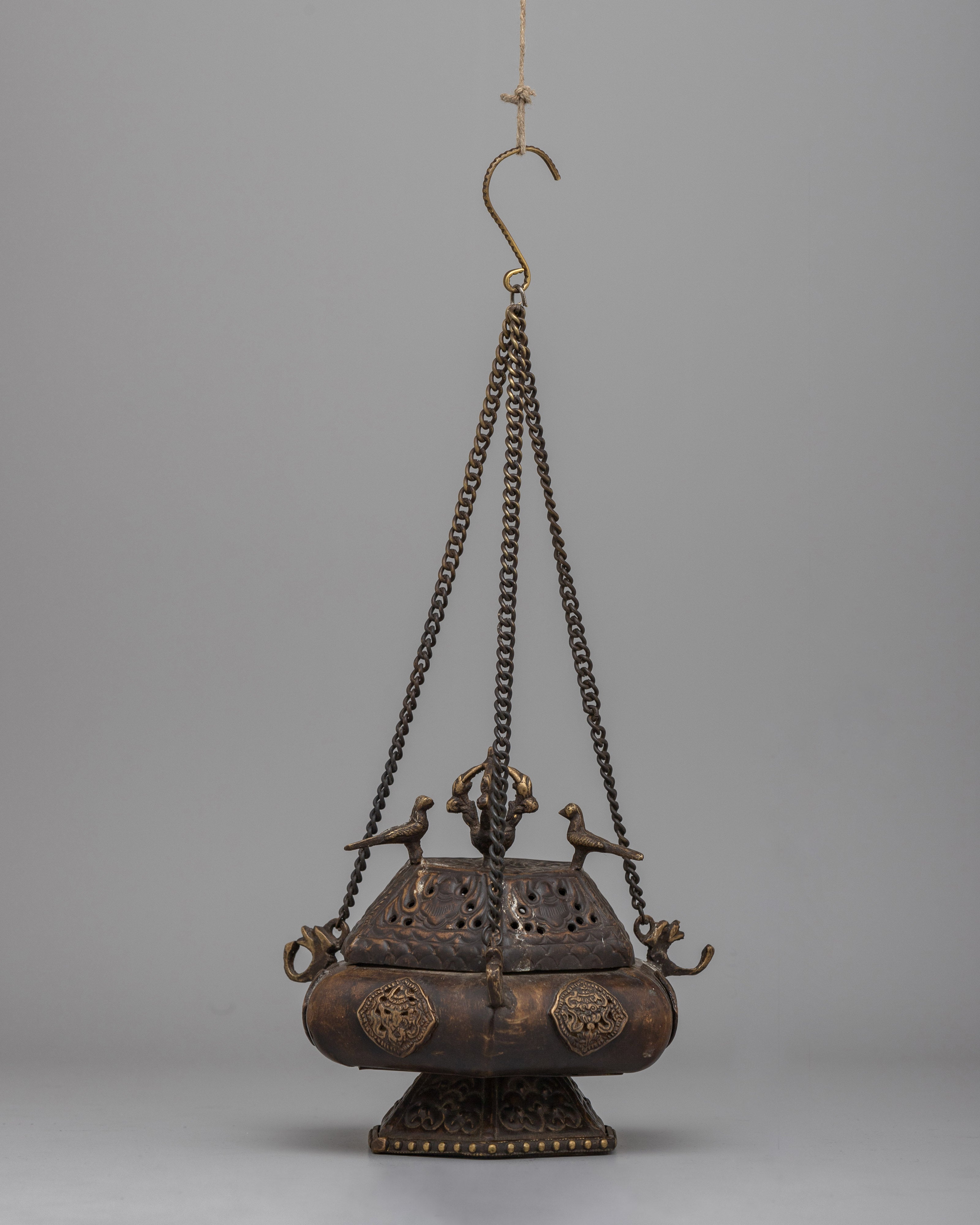 Incense burners are sometimes known as thuribles and can be swung by hand or suspended from the ceiling. The swinging action creates a draught through the censer, which allows the charcoal to glow and the incense to burn more strongly.
