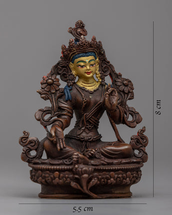 Discover Compassion with Our Small Green Tara Statue | Oxidized Copper Sculpture