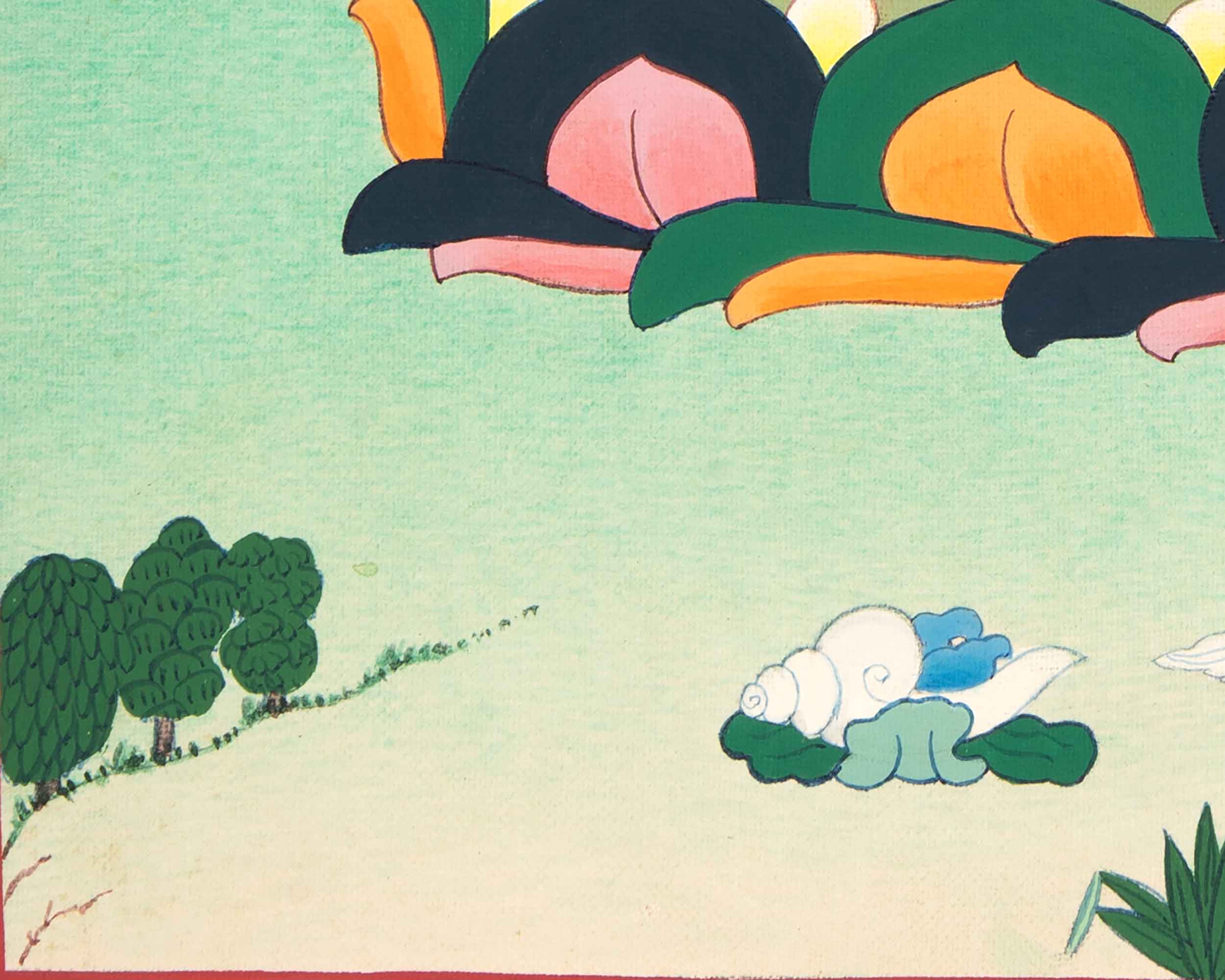 We are a team of traditionally trained Karma Gadri artists from Boudha Stupa. Our lineage comes from Venerable Master Jamyang Phunshok. Who is from Kham, Eastern Tibet.