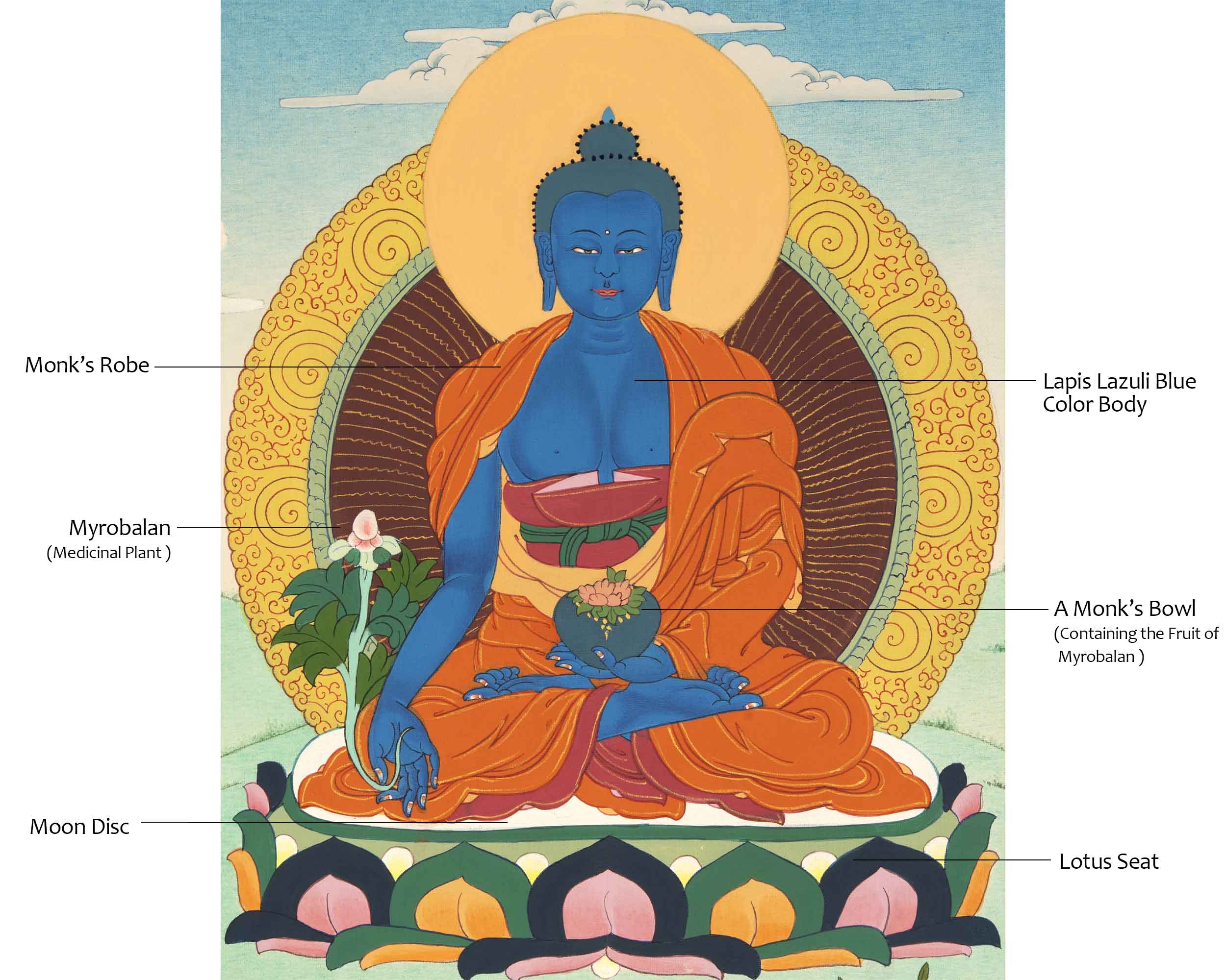 Note: Medicine Buddha Thangka is an original painting from Enlightenment Studio located at Boudha Stupa.