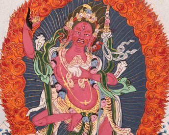 Vajravarahi is one of the most popular female Tantric deities in all traditions of Tibetan Buddhism. Although there are several forms, the basic iconography is that she has one face, (usually) two hands and two legs, is usually red in colour, and standing in a dancing posture on a human corpse.