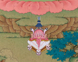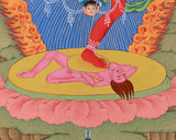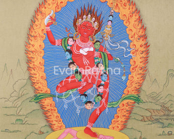 This small Vajrabarahi thangka depicts the powerful and wrathful deity, Vajrayogini. Handpainted with intricate details, this thangka is a perfect addition to any Buddhist or Tibetan spiritual practice. Connect with the divine energy of Vajrayogini and enhance your meditative experience with this beautiful and powerful representation.