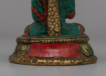 Spiritual Amoghasiddhi Buddha Statue | Coral and Turquoise Inlay