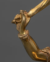 Manjushri, described as the embodiment of ultimate knowledge in Mahayana Buddhism, is renowned for his capacity to remove ignorance and bring about enlightenment. His sword, which cuts through the darkness of ignorance, and the text, which represents the Prajnaparamita, or the perfection of knowledge. are important symbols in his iconography.