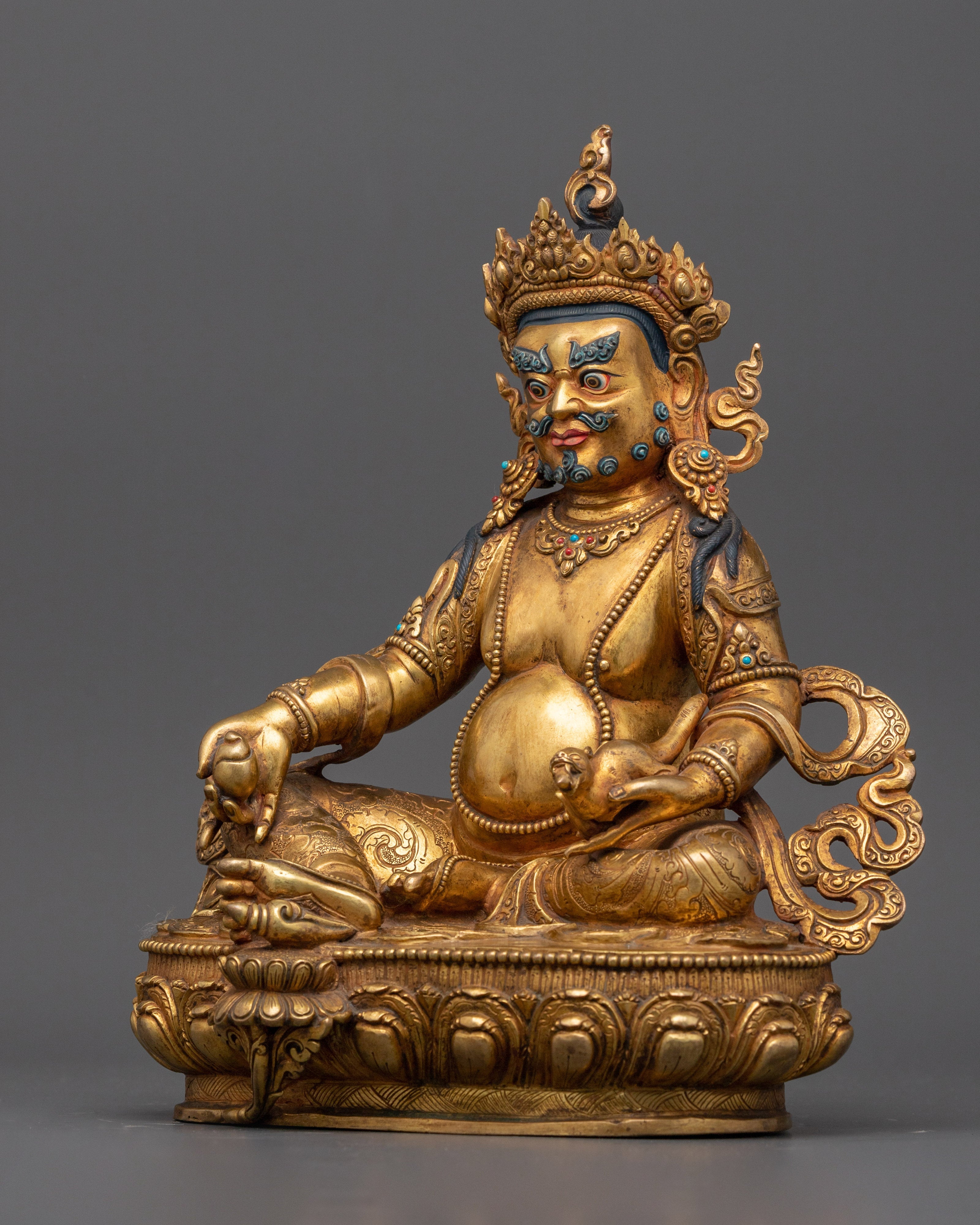 Spiritual Dzambhala Sculpture | 24K Gold Gilded Copper Statue