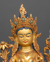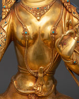 Spiritual Green Tara Figurine | 24K Gold Gilded Gemstone Copper Masterpiece