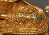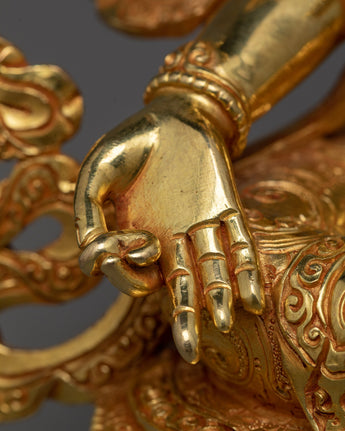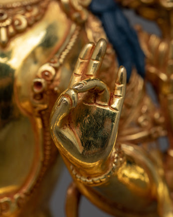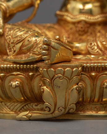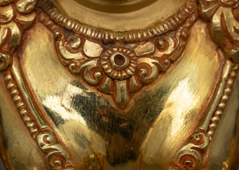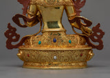 This statue, made of high-quality copper and gilded in 24K gold, exudes eternal beauty. The gold and acrylic paintings provide bright accents to the delicate intricacies and symbolic aspects that demonstrate the artists' passion and ability. The use of hand-carved jewels adds to its elegance, transforming each item into a one-of-a-kind statement of spiritual art. Consider the peaceful and uplifting vibe this Spiritual Handmade Art Statue could bring into your home. Could it become a focal point for your meditation and spiritual activities, promoting peace and a deeper connection to the divine?