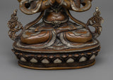Spiritual Handmade Statue of Chenrezig in Oxidized Copper and Silver