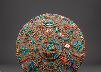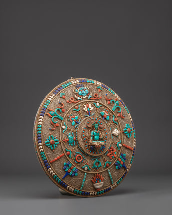 This spiritual wall art, created to encourage peace and strengthen your meditation practice, mixes traditional symbols with refined craftsmanship. Lapis lazuli is renowned for promoting self-awareness and mental clarity, whilst turquoise is valued for its healing and protective properties. Coral offers vivid energy, representing life force and rejuvenation. Together, these stones create a serene aura in your home, elevating this wall hanging beyond mere decor to a sacred instrument for spiritual growth and mindfulness. The combination of metals and the vibrant colors of the stones produces a stunning contrast that boosts the aesthetics of any space.
