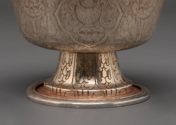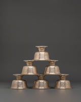 Intricately hand-engraved with traditional Tibetan designs, these bowls reflect spiritual artistry. The silver coating not only increases its visual appeal but also ensures spiritual purity. With a total set weight of 2.07 kg and a single bowl weighing 0.28 kg, this set seamlessly blends practicality with elegance. Ideal for collectors, practitioners, and anyone seeking Himalayan spiritual artifacts.