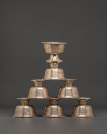 Spiritual Offering Bowl Set | Hand-Engraved Tibetan Ritual Vessels for Puja