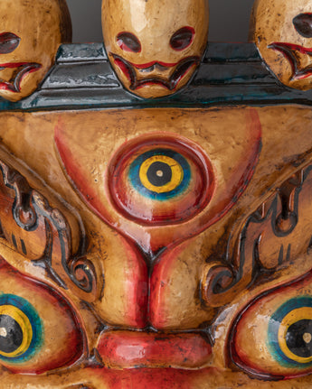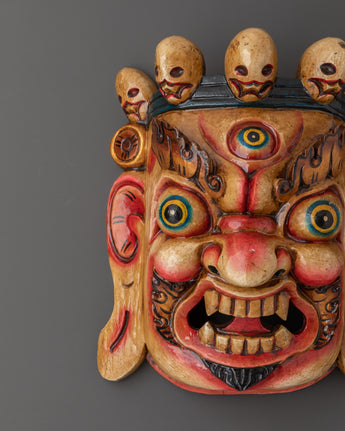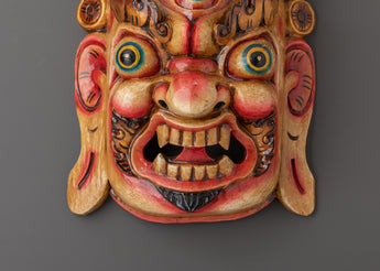 This handcrafted wooden guardian mask wall hanging seamlessly combines artistic craftsmanship and spiritual significance, making it ideal for individuals seeking meaningful ethnic décor. This piece is ideal for spiritual enthusiasts and collectors alike, as it is associated with keywords such as protector deity mask décor, spiritual wall art, ethnic tribal wall hanging, and meditation room decoration, ensuring it captures attention both visually and online for those seeking authentic Himalayan cultural treasures.
