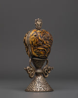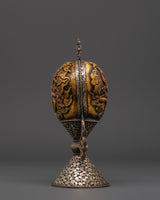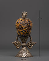 Enhance your spiritual area with this handcrafted Spiritual Symbol Stamp, which is ideal for meditation, blessings, and divine offerings. This ritual seal is meticulously crafted from white metal and fiber and has elaborately embossed motifs representing divine energy and spiritual guardianship. It is ideal for altar construction or ceremonial use because it exudes a calm presence and links the practitioner with higher worlds during rituals or regular spiritual activities.