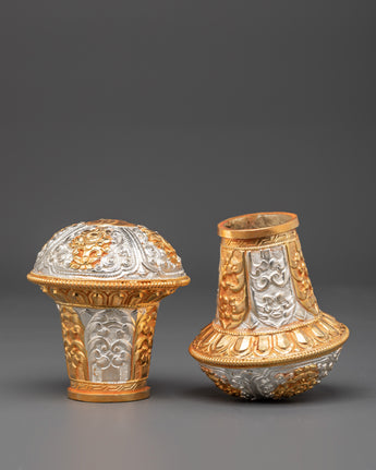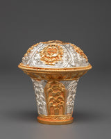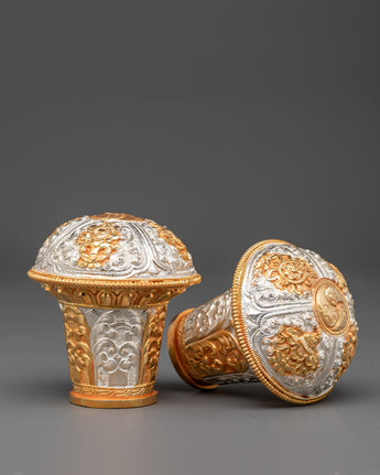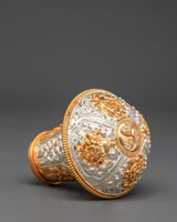 Handcrafted Spiritual Tibetan Stick Cap with Silver and Gold Plating for Ritual Practice