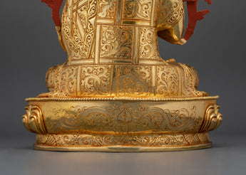 The finely crafted statue embodies the spirit of Tsongkhapa, with his signature hat and hand mudras, making it an ideal centerpiece for Buddhist altars, meditation rooms, or as a prized addition to any collection of Buddhist holy art. This stunning work of art also displays the meticulous craftsmanship of Nepalese artisans who have brought Tsongkhapa's loving presence to life.