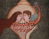 This Spiritual Union of Masculine and Feminine Canvas Print symbolizes the harmonious combination of masculine and feminine forces, stressing balance and spiritual growth. The central couple represents unity, with their relationship embodying the transformational power of love and shared energy. Surrounding them are potent symbols such as the conch shell, which represents divine sound and spiritual enlightenment, and the peacock, which represents beauty and immortality.