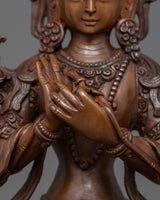 Manjushri is depicted holding his flaming sword in his right hand, representing the cutting of ignorance and the illumination of truth. His left hand gently holds a lotus bloom, symbolizing the blossoming of wisdom and purity. His tranquil look shows both knowledge and compassion, embodying the balance between intellectual clarity and sympathetic understanding. This Manjushri Figurine is ideal for altars, meditation places, or as a gift for individuals looking for spiritual guidance.