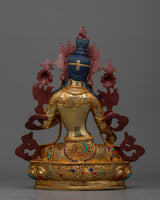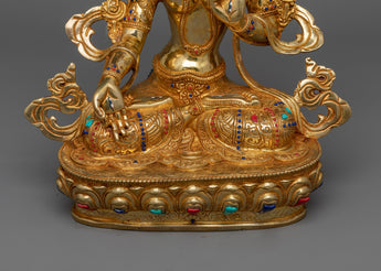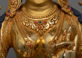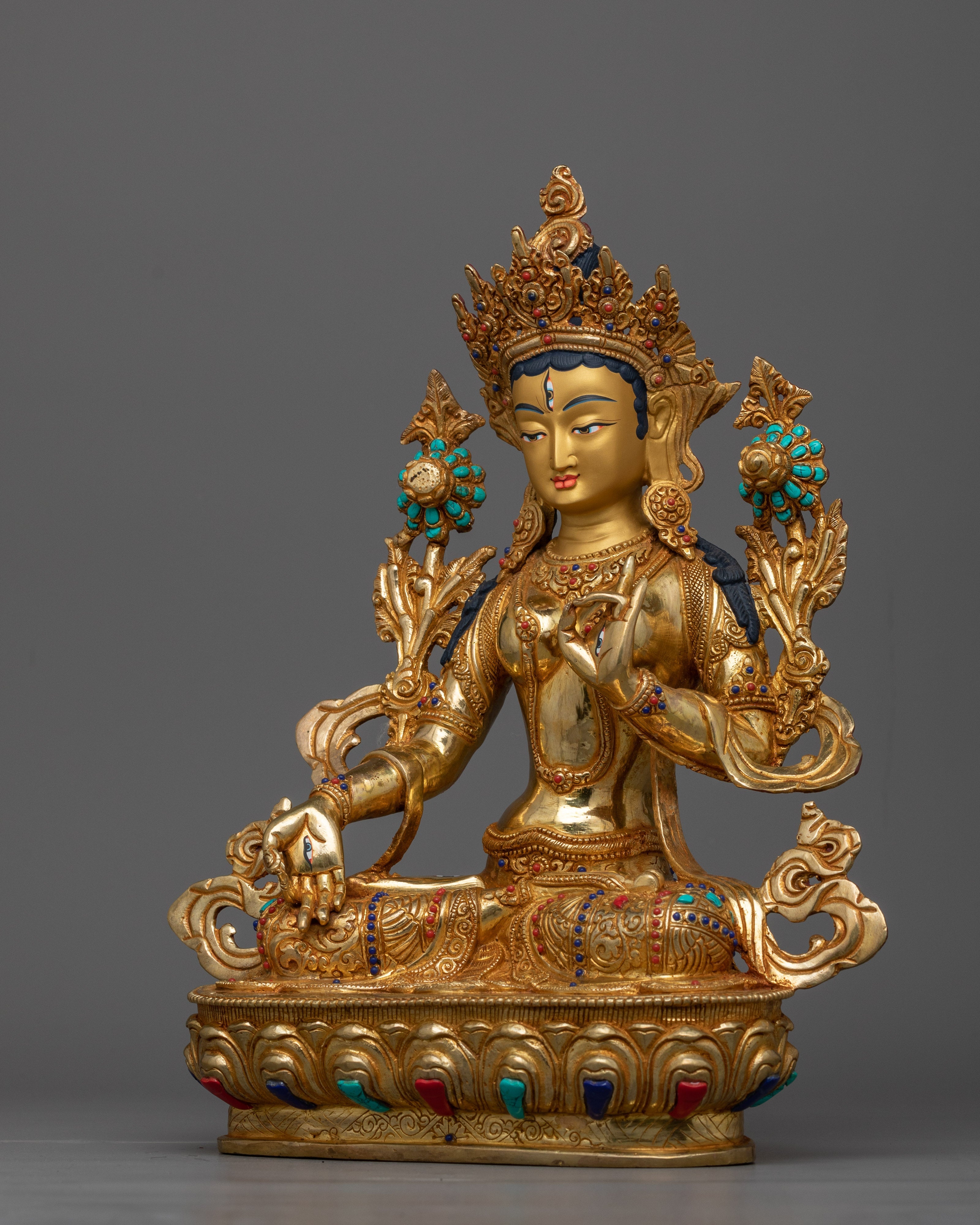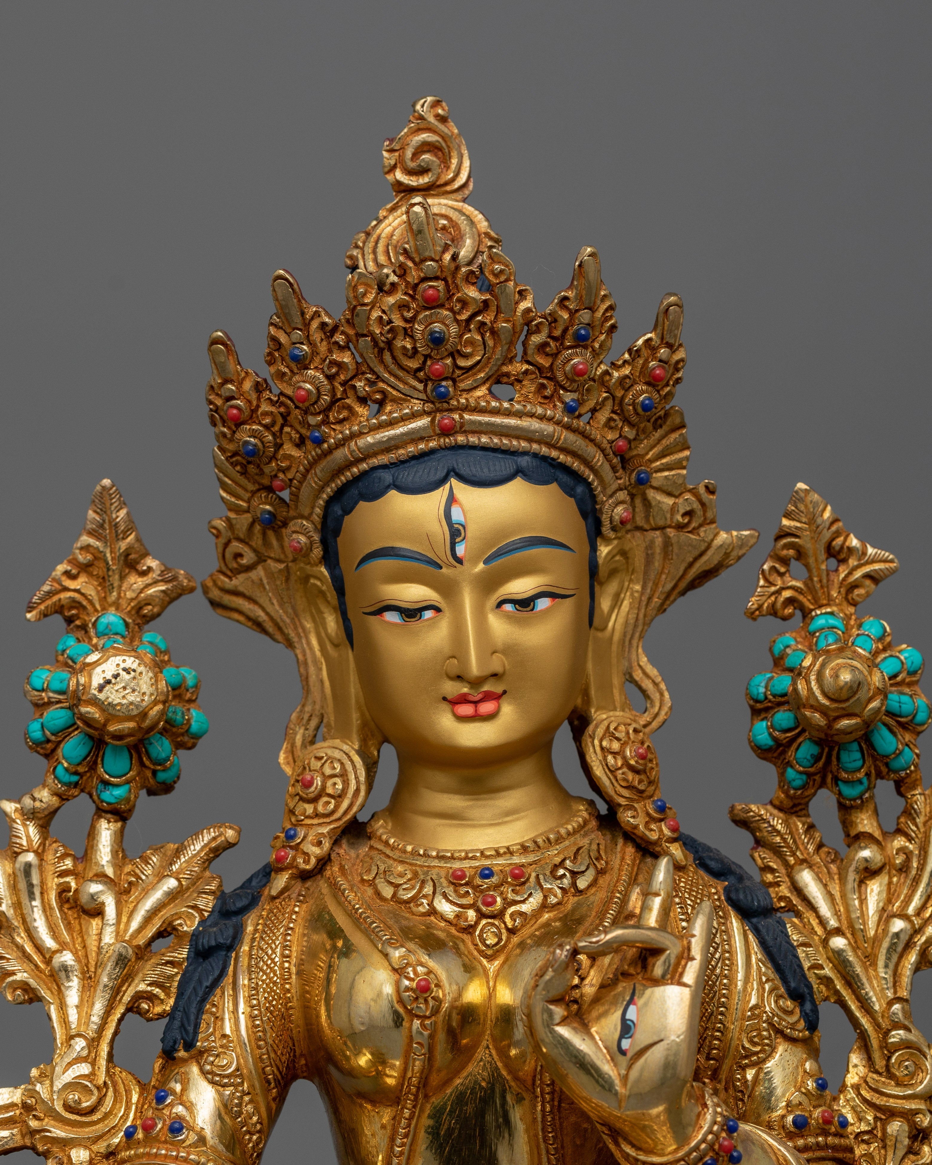 Sri White Tara Statue | Hand-Carved Gemstone, 24K Gold Gilded