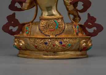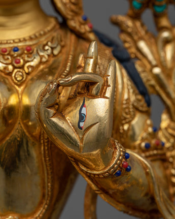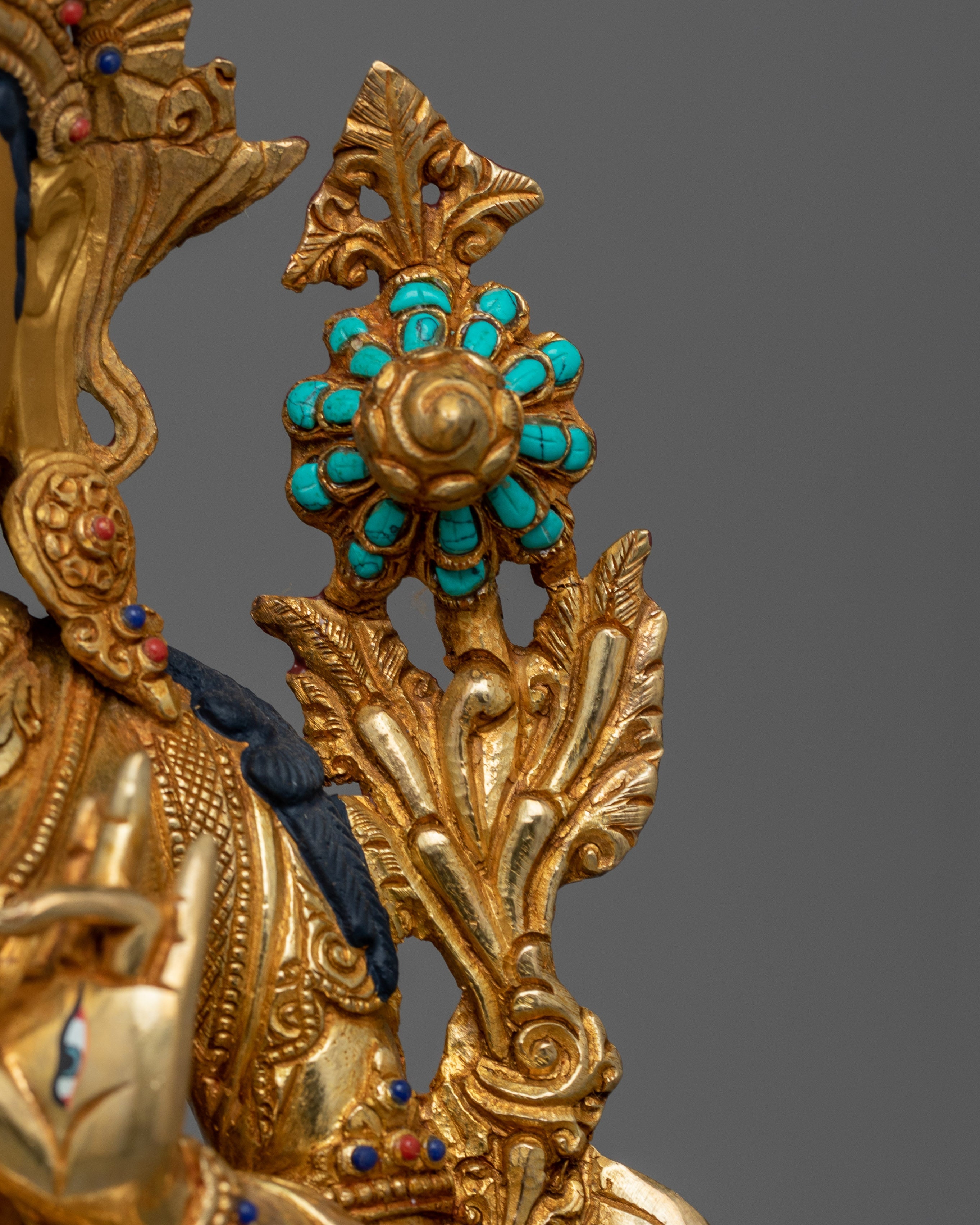 This statue stands out for its regal presence at an astounding height of 13.19 inches (33.5 cm) and base width of 10.63 inches (27 cm). Made from 24K gold-gilded copper, the work of art radiates luxury and spiritual resonance because every little detail is delicately brought to life.
