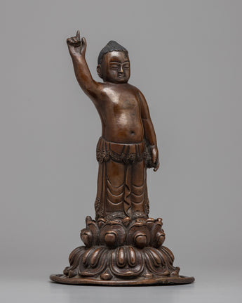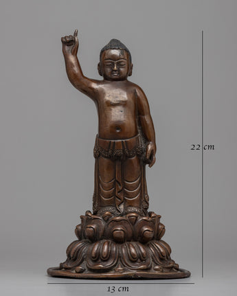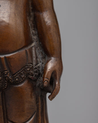 With our Standing Buddha Statue, you may welcome the Buddha's timeless wisdom and tranquility into your home. Crafted by hand from oxidized copper, this magnificent work of art is 22 cm tall and exudes a calming atmosphere that enthralls the senses.