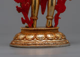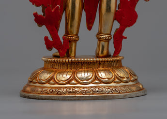 The Standing Chenrezig Figure encourages you to enter the domain of compassionate wisdom. With its 14.2-inch height and 2.73-kilogram weight, this magnificent statue evokes a sense of heavenly grace and compassion. It embodies the spirit of Chenrezig's adoring presence with its exquisite paintings and 24K gold gilded copper construction. Let yourself become in touch with Chenrezig's infinite wisdom and love as you observe his serene demeanor and loving stance. Chenrezig extends his arms and his loving glance, inviting you to cultivate compassion in your life and to open your heart.